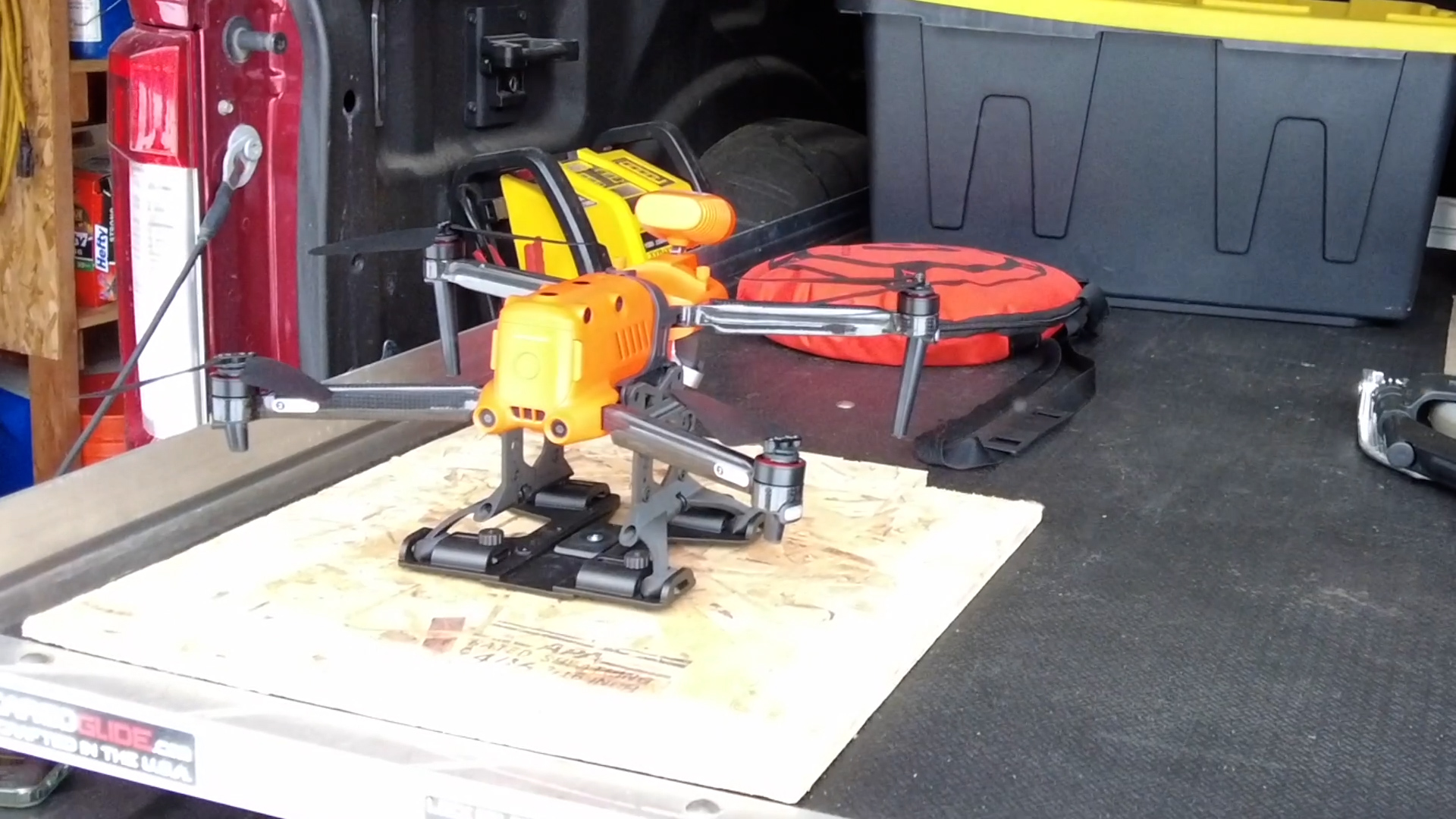 - Sliding locking bars securely hold an EXOLANDER© equipped drone on the ExoDock© during transport, use, and storage