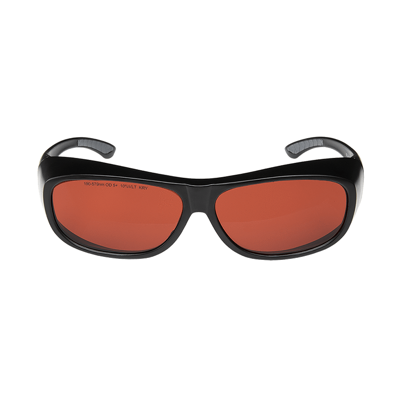 Red OD5+ laser protective goggles have a wraparound design that allow wear over prescription glasses and offer 100% UV protection. Used in conjunction with forensic lasers to visualize evidence and/or to provide eye protection. Blocks wavelengths below 620nm to allow fluorescence to be seen. Used in general crime scene search and looking for fingerprints. Use with the following wavelengths: cyan(495nm), and green (525-532nm).