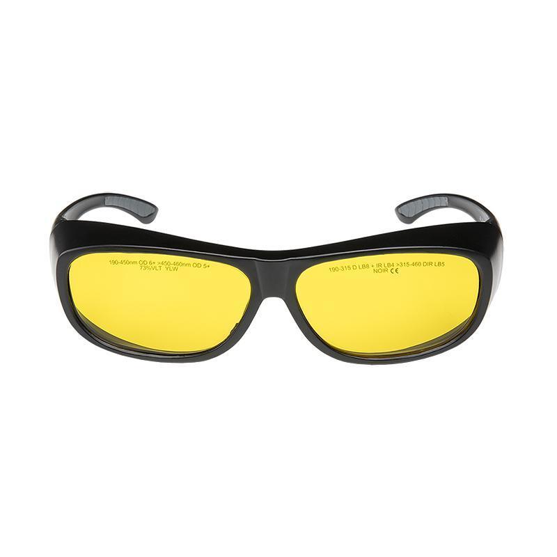 Yellow OD 6+ laser protective goggles have a wraparound design that allow wear over prescription glasses and offer 100% UV protection. Used in conjunction with forensic lasers to visualize evidence and/or to provide eye protection. Blocks wavelengths below 515nm to allow fluorescence to be seen. Used in general crime scene search and looking for fingerprints. Use with the following wavelengths: UV (365-395nm), blue (450-470nm), cyan(495nm), and green (525-532nm).