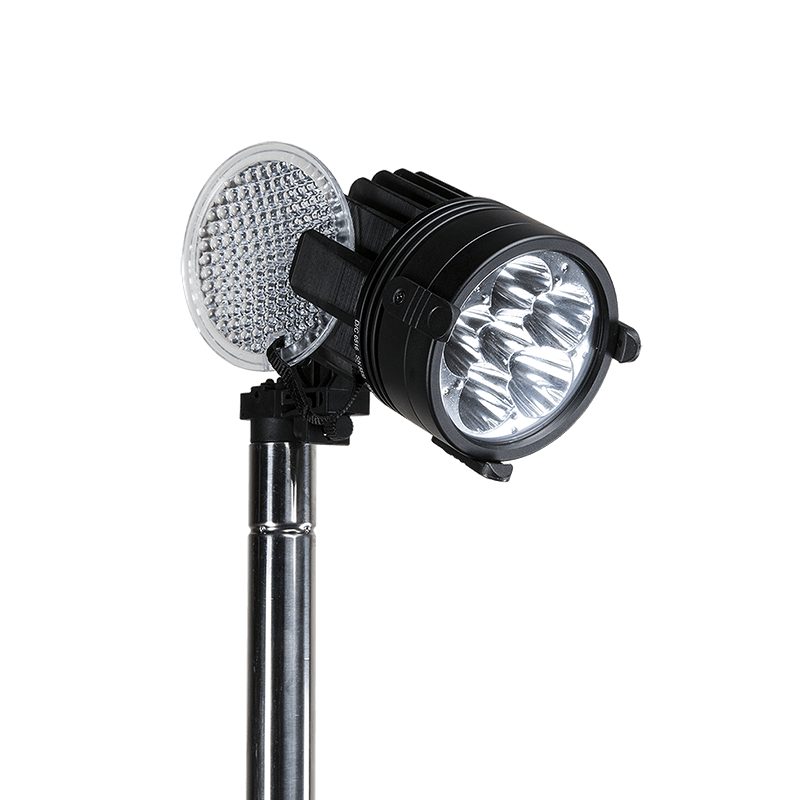 Many portable area lights only extend to 6ft (1.8 m) tall, which is near the eye level and potentially blinding. The Prime extends up to 8 ft (2.4 m) tall to deliver overhead lighting that does not blind the user.