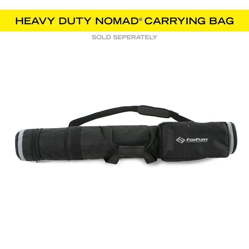 The Nomad stows as a compact tube weighing 18 lbs (8.2 kg). A shoulder strap is included for easy transport. The light is designed so that an individual can deploy it in 20 seconds.