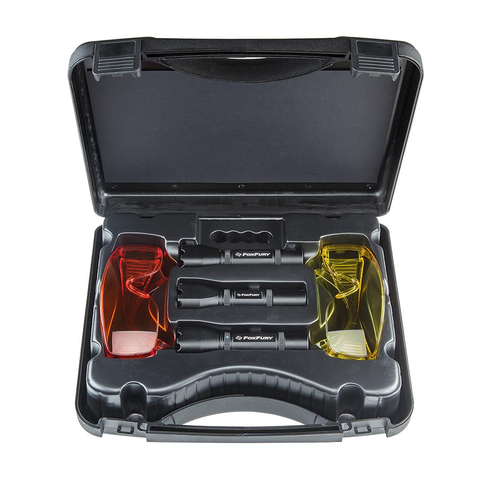 FoxFury uses the newest LED technology from OSRAM and others. White light and multi-color / wavelength-specific forensic light sources (from UV to IR) are available.